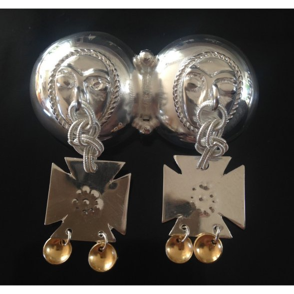 Sølja leveres hvit, og hvite korsløv og med forgylte runde løv. Den er ca. 5 cm bred og veier ca 15 gram. Leveringstid er 1 uke og den blir sendt I smartpakke.